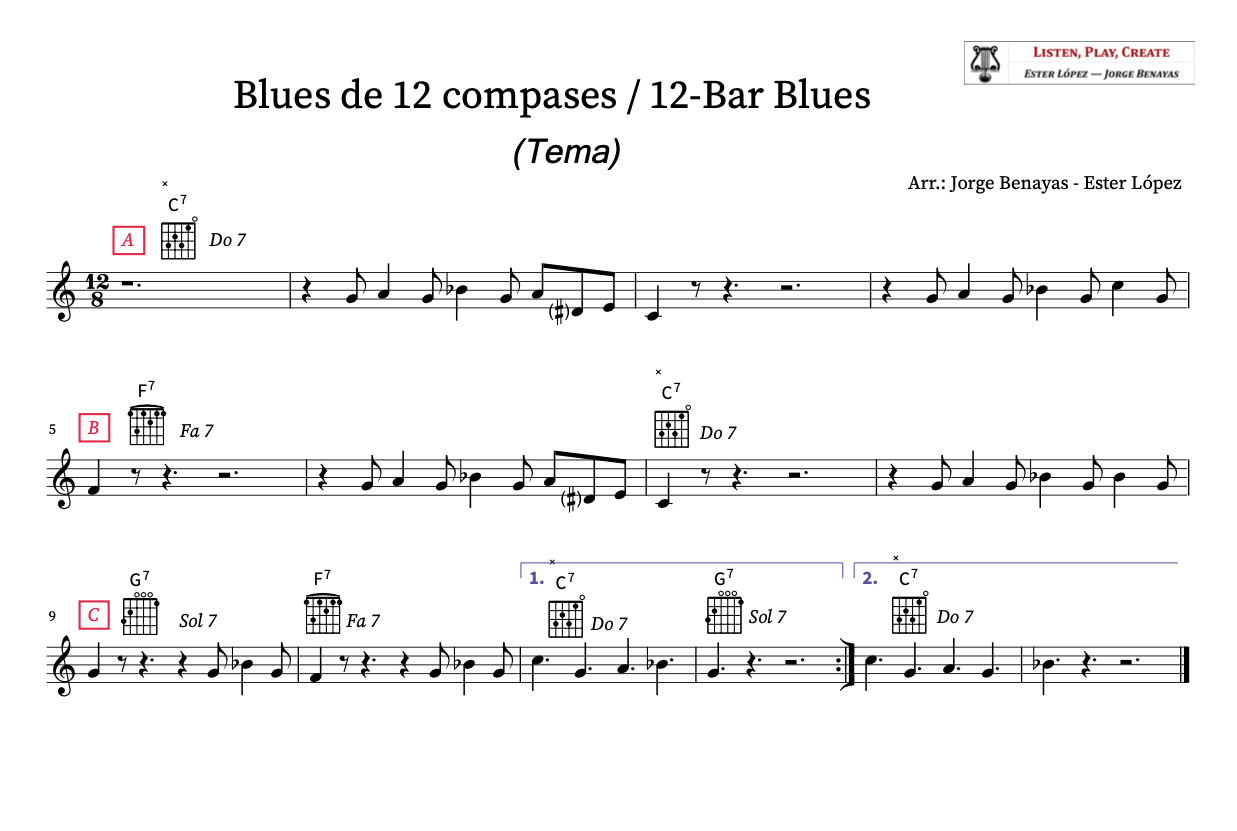 Improvisar significa crear música en el momento, sin necesidad de partitura, pero dentro de un contexto y siguiendo algunas reglas básicas. En el caso del blues, una de las reglas más importantes es que la improvisación debe desarrollarse sobre la escala blues (por ejemplo, en Do), respetando la estructura armónica de 12 compases.